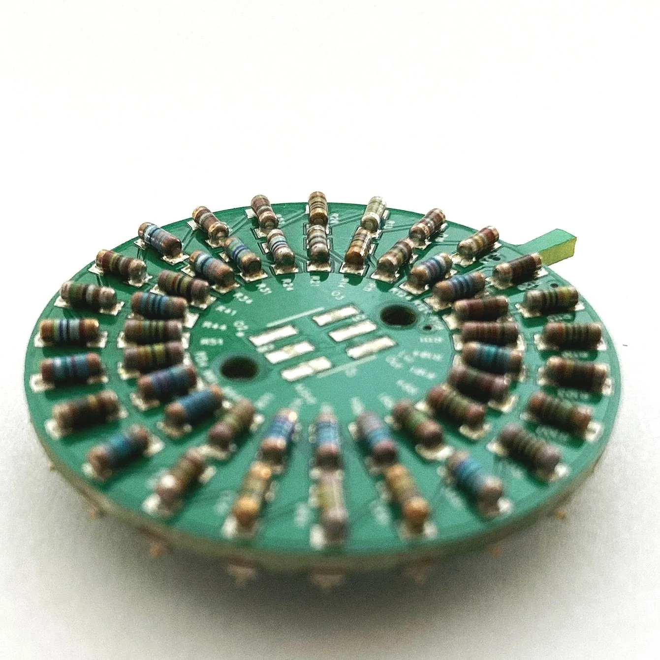Resistor side of the v4.0 ladder level. A total of 48 MELF resistors for the 24 steps on a level.